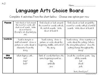 Download language arts choice board Reader